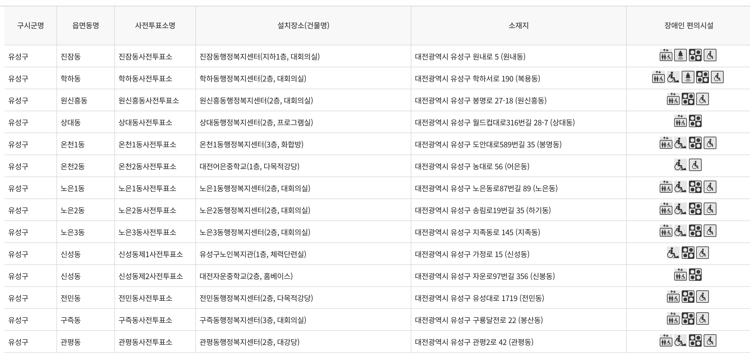 <대전광역시 유성구 사전투표소, 투표소 안내>