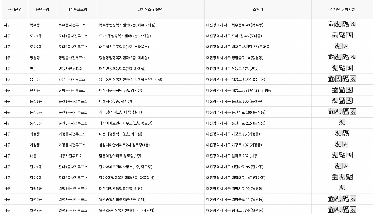 <대전광역시 서구 사전투표소, 투표소 안내>