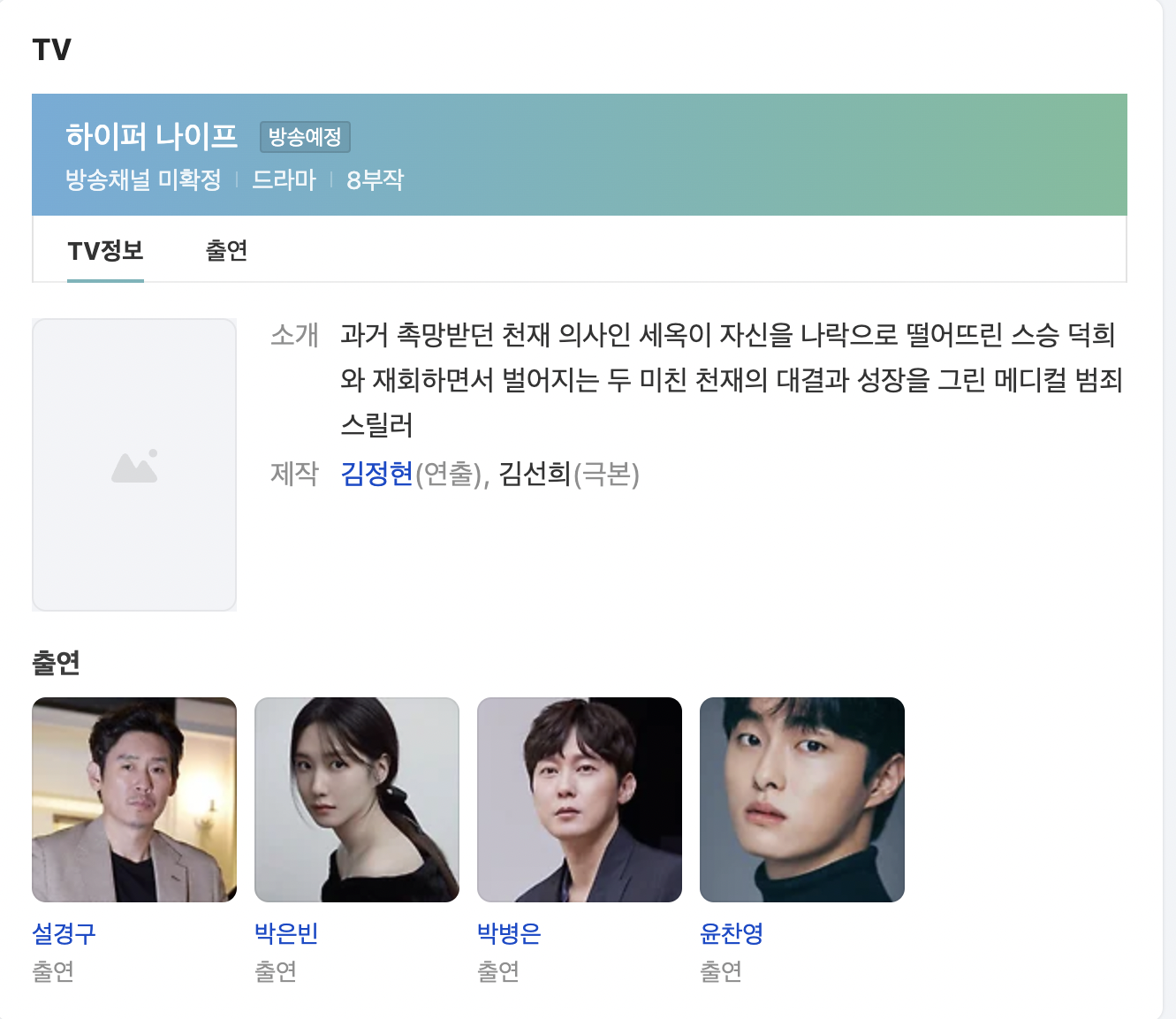 드라마 하이퍼나이프 주인공 설경구 박은빈 메디컬 범죄 스릴러 드라마