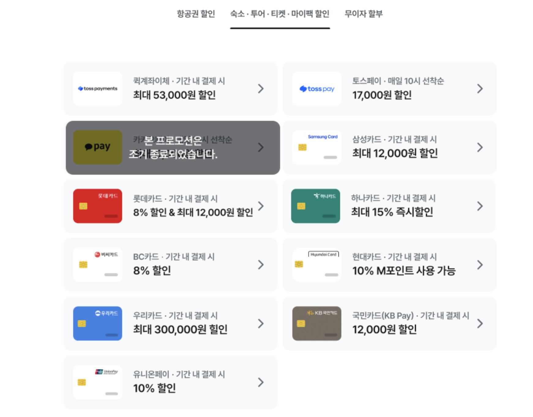 해외 투어, 티켓, 액티비티, 클래스, 여행편의 상품에 적용가능합니다.
