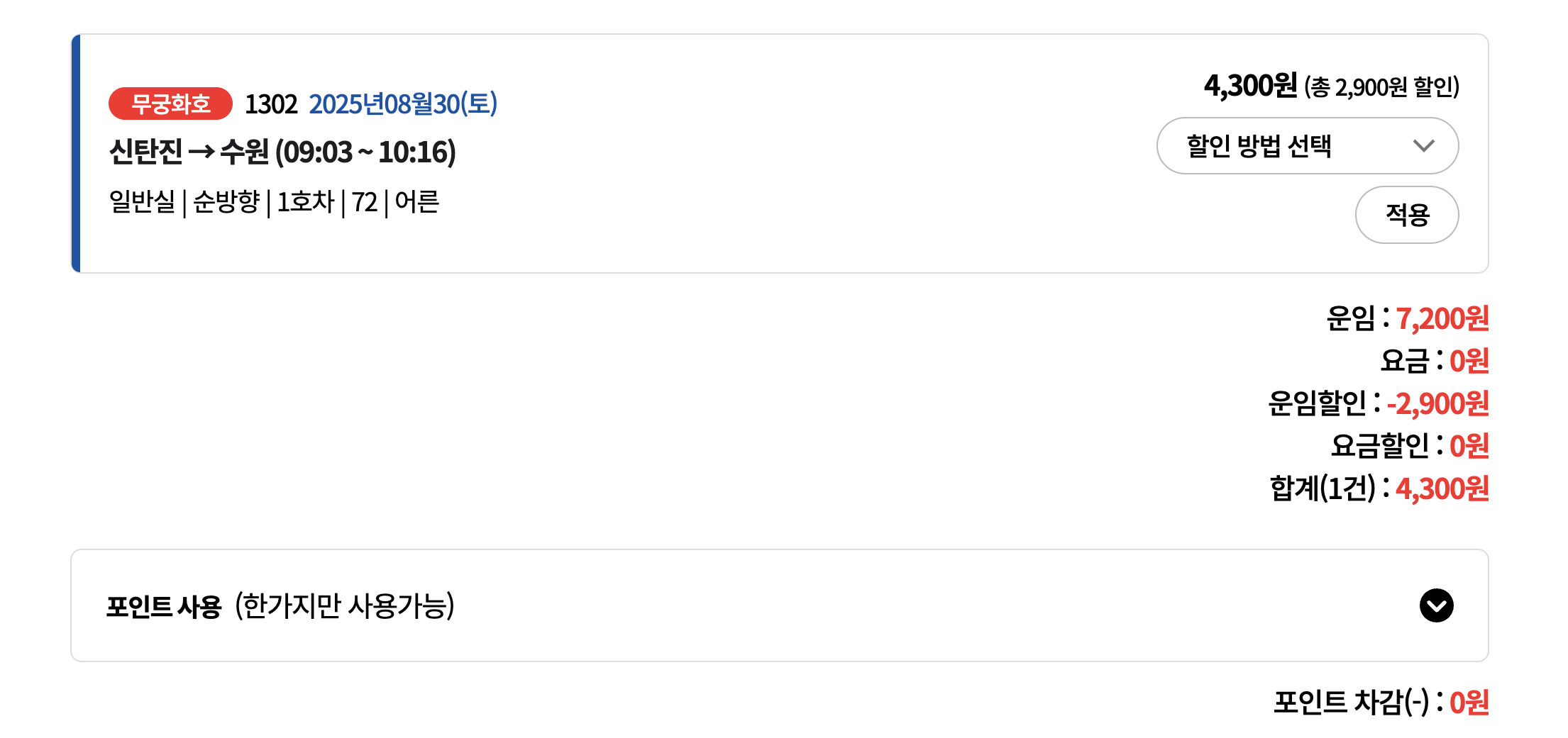 ✅ 할인적용된 승차권을 결제하시면 예약이 완료됩니다.
