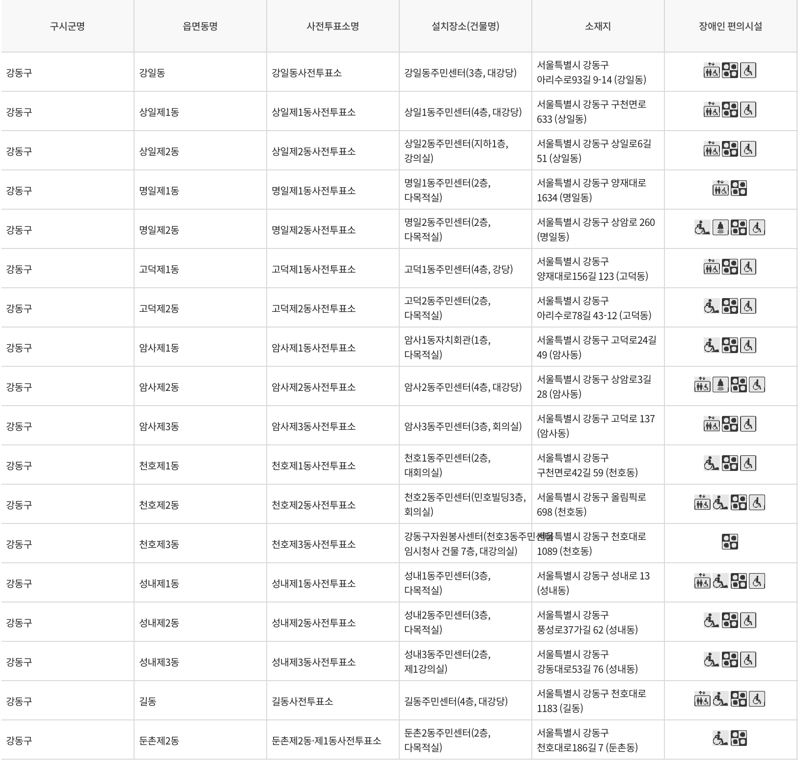 1. 서울특별시 강동구 사전투표소 위치