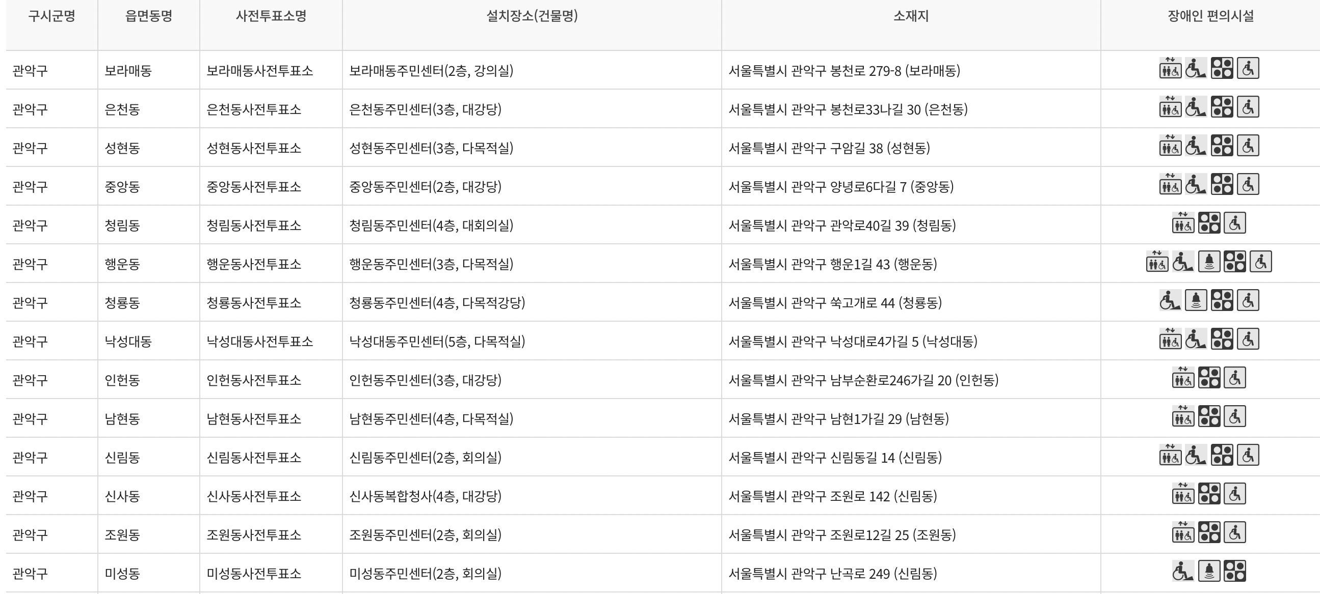 ⬇️ 서울특별시 관악구 투표소 확인하기 ⬇️