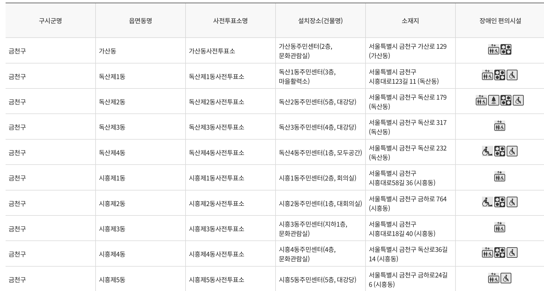 1. 서울특별시 금천구 사전투표소 위치