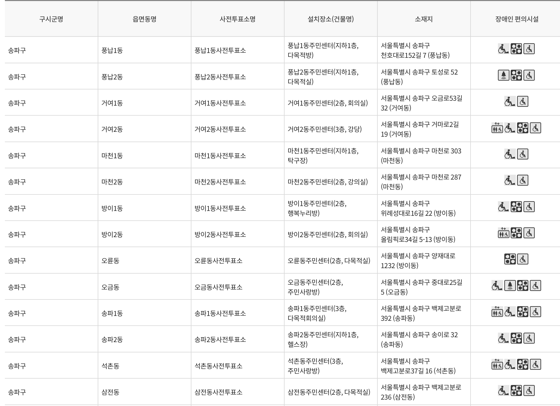 서울특별시 송파구 투표소 장소를 안내해드렸습니다.