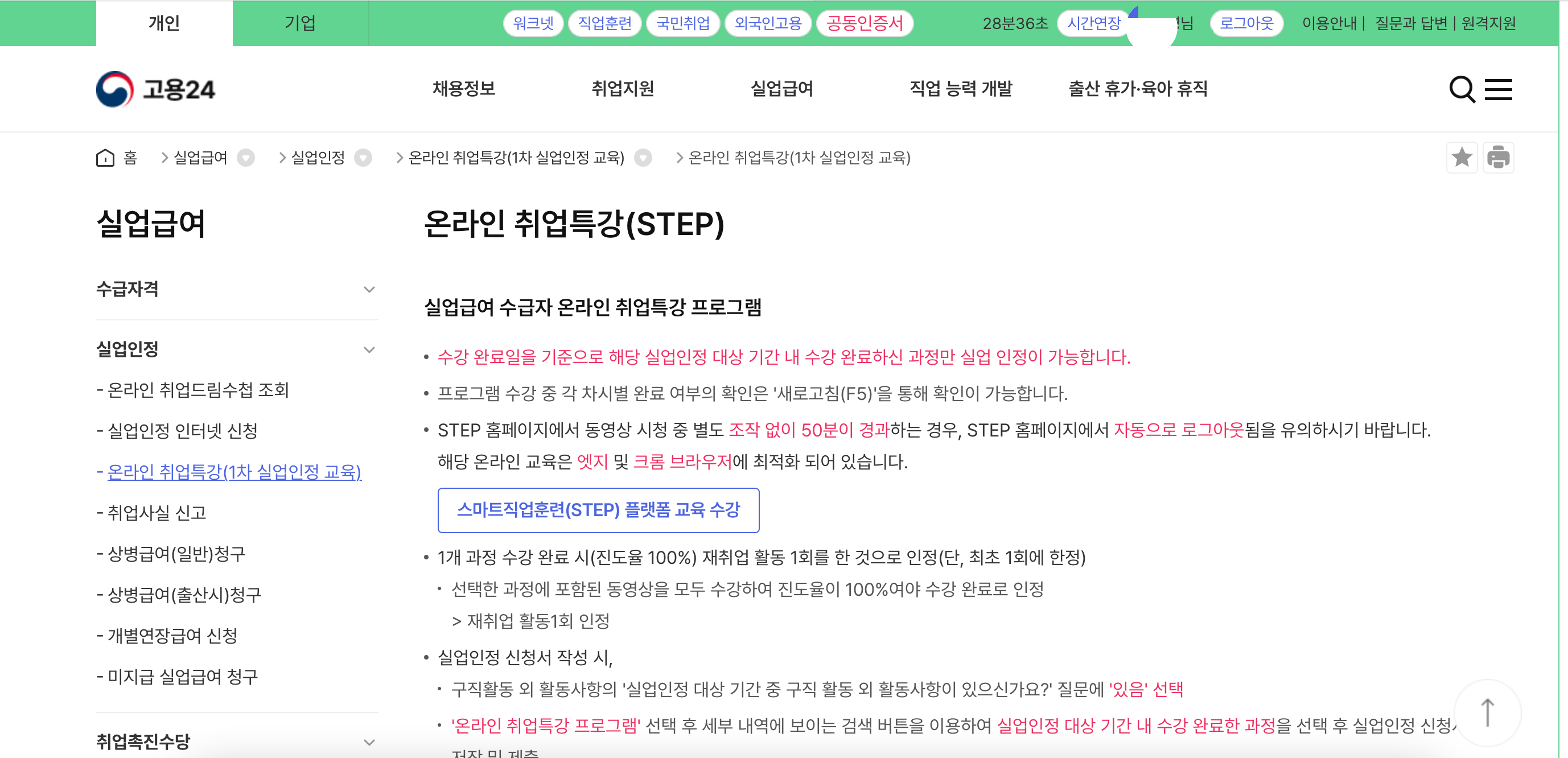 - 2024. 03. 22. : 1차 실업인정일(인터넷 교육 제출)