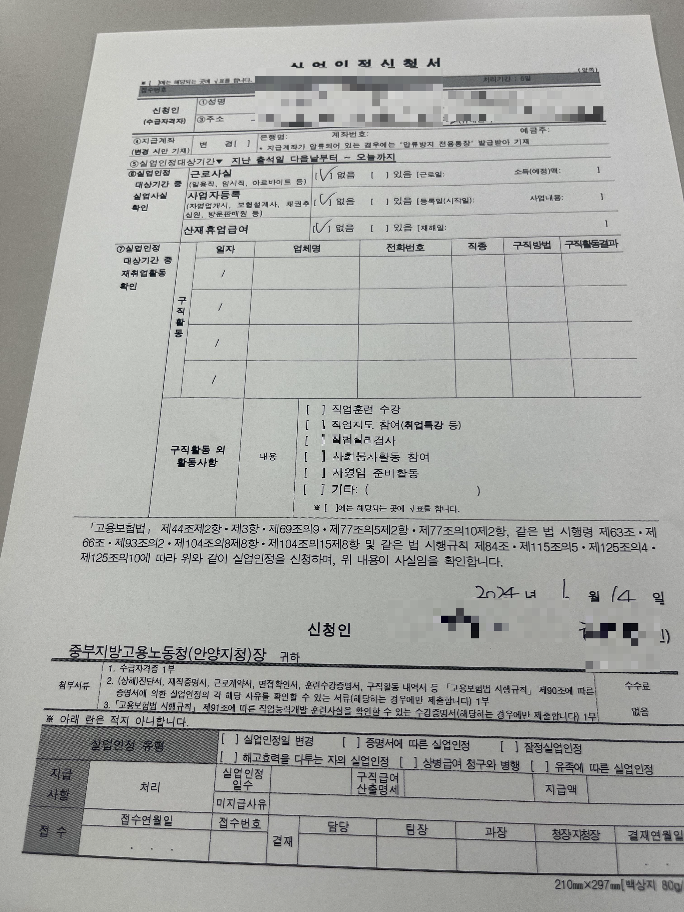 - 작성한 신청서와 신분증을 제출하고 5분도 안되서 4차 실업인정이 완료되었습니다.