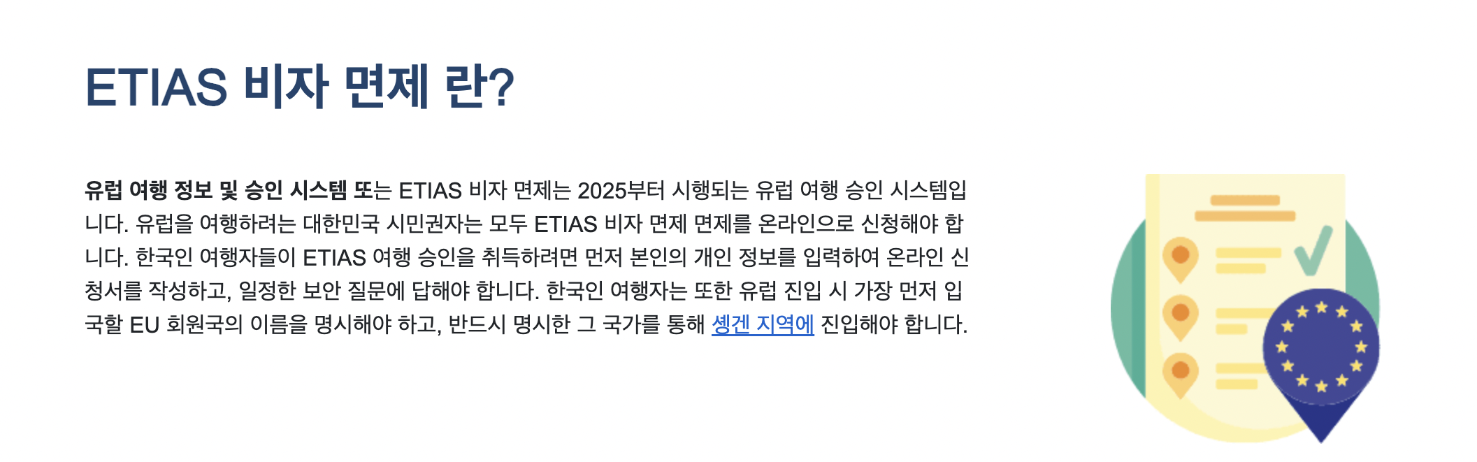 2025년 부터는 ETIAS가 도입됨에 따라 많은 것들이 변경됩니다. ETIAS는 전자 비자 면제 프로그램입니다.