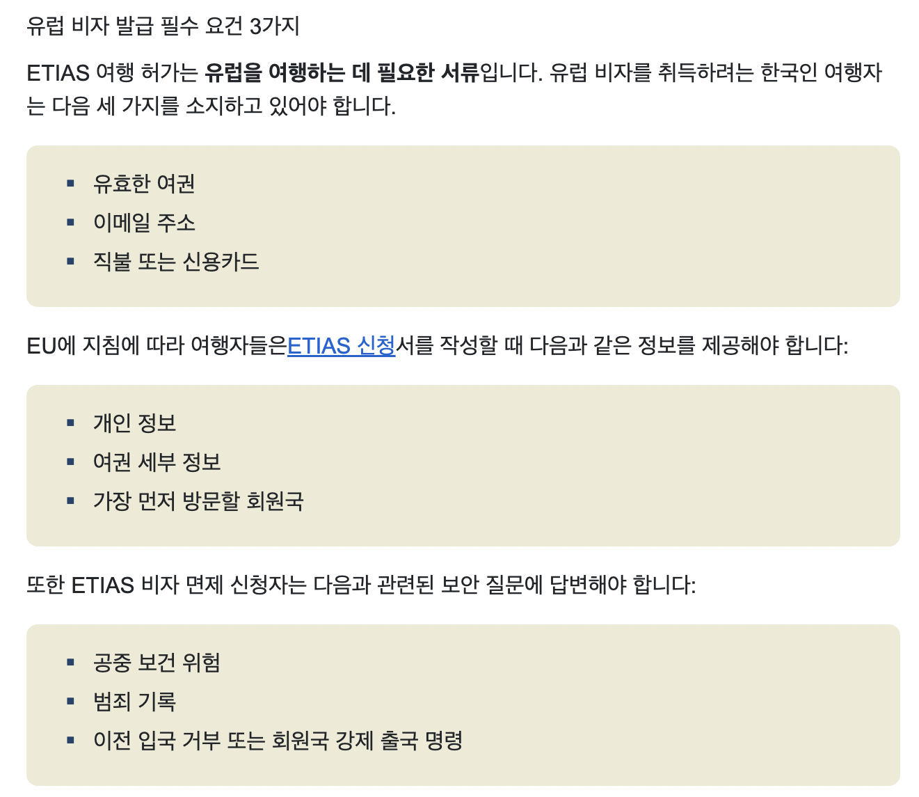 ✅ 신청절차 : 온라인으로 ETIAS를 신청할 수 있으며, 기본적인 개인 정보와 여행 정보를 제공해야 합니다. 신청은 크게 어렵지 않습니다.