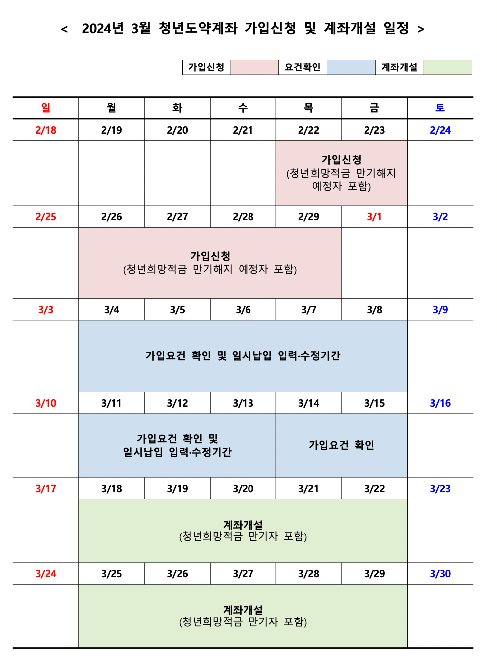 - 계좌개설 : 3/18 - 3/29 (청년희망적금 만기자 포함)