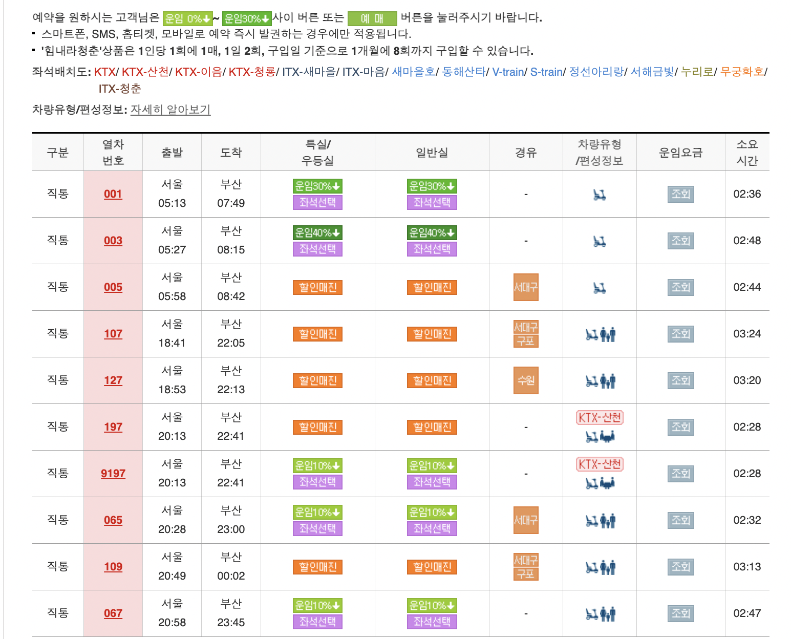 ✔️ 열차별 승차율에 따라 지정된 좌석을 10~40%까지 할인받을 수 있습니다.