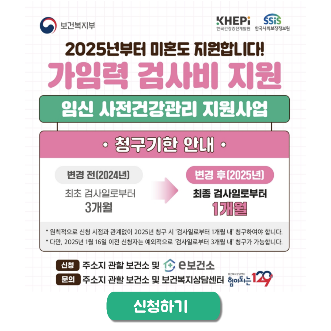 ↓↓↓↓ 임신 사전건강관리 검사비 지원 신청하기 ↓↓↓↓↓